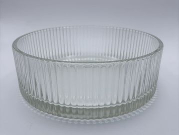 Elegant glass candle bowl featuring delicate ribbed detailing all around. A stunning centerpiece with 4 wicks that adds warmth and style to any table setting.