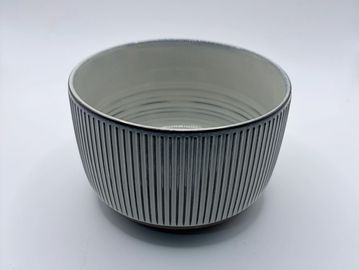 Top glazed ceramic bowl with rustic ribbed pattern wrapped exterior, with uncoated terracotta brown base.